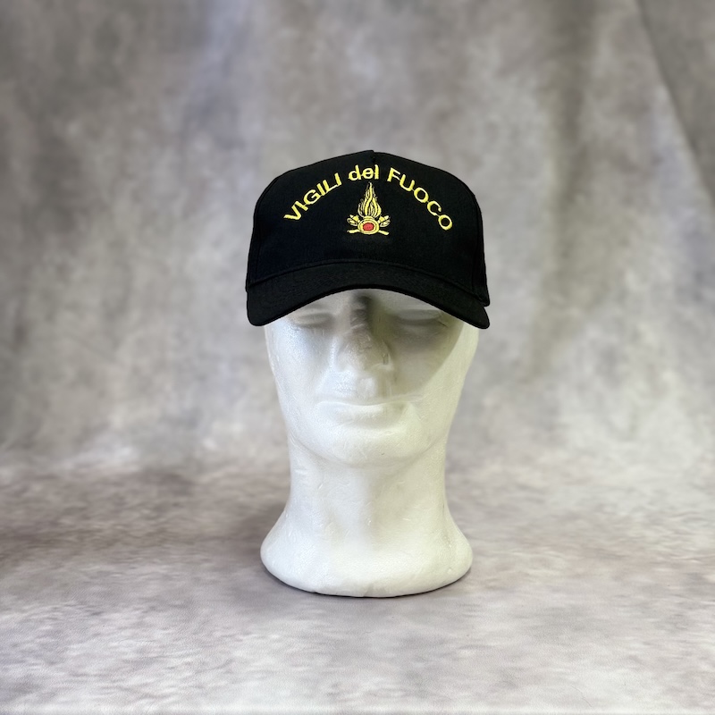 Cappello con Visiera cotone 100% colore Nero con Stemma ricamato Vigili del Fuoco.
