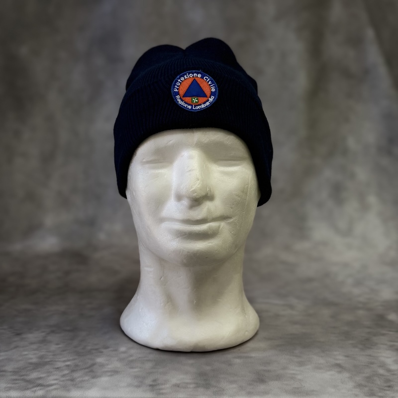 Cuffia (zuccotto) invernale, con stemma ricamato Regione Lombardia. Colore blu, misura unica.